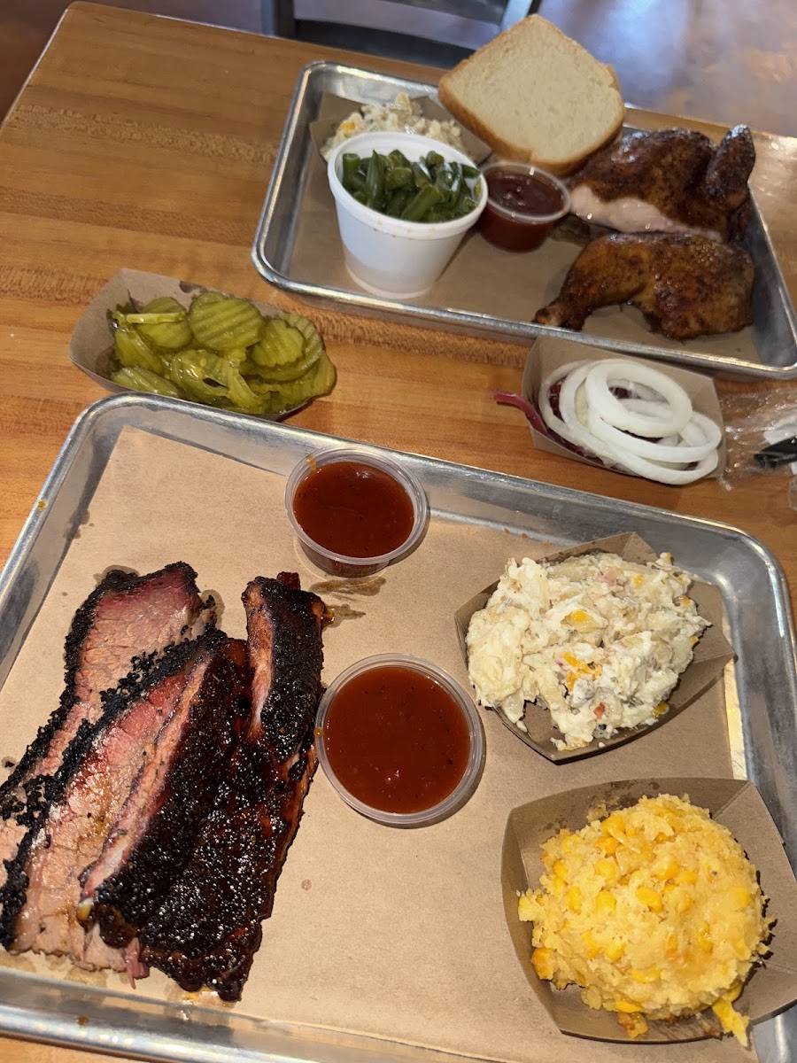 When it comes to sides, the warm potato salad has garnered rave reviews, with Donna Wiley insisting it’s reason enough to return. For dessert, indulge in a slice of Peach Crumble or a cup of Banana Pudding, each a perfect touch to end your meal on a sweet note.